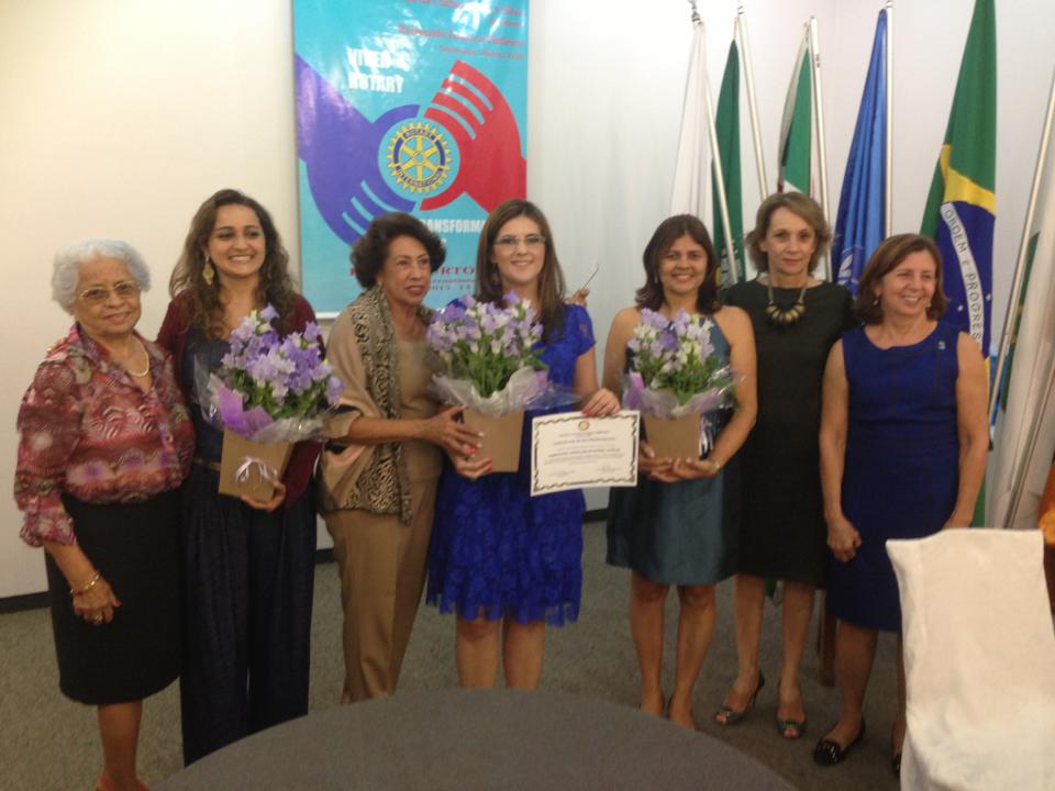 Lorena Baía entre as farmacêuticas rotarianas Bernadete Simas ( de cabelo curto -atuante na área de manipulação e homeopatia) e Fernanda Avila (área de distribuição e logística farmacêutica)
