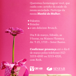 O evento contou com palestra show da professora de etiqueta e estilo Adelita Costa e foi um sucesso. Todas as farmacêuticas ganharam brindes, um lindo ktit de unhas e maquiagem do Sinfargo, além de uma sacolinha contendo amostras de cosméticos e a cartilha Sou Mulher, Sou Farmacêutica, Tenho Direitos elaborada pela Federação Nacional dos Farmacêuticos (Fenafar) e publicada pelo Sinfargo.