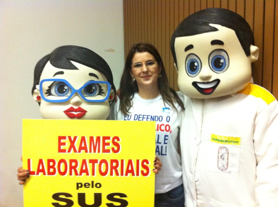 Os manifestantes em favor da atualização da tabela de preços de exames pagos pelo Sistema Único de Saúde (SUS) se reuniram em Brasília nesta segunda-feira, 5/8, sob a coordenação do Grupo de Trabalho sobre Análises Clínicas do Conselho Federal de Farmácia (CFF). Eles se juntaram ao Movimento Nacional em Defesa da Saúde Pública, o Saúde+10, que entregou ao presidente da Câmara dos Deputados, Henrique Alves, mais de 1,8 milhão de assinaturas de apoio ao projeto de Lei que destina 10% das receitas correntes brutas da União para o SUS.