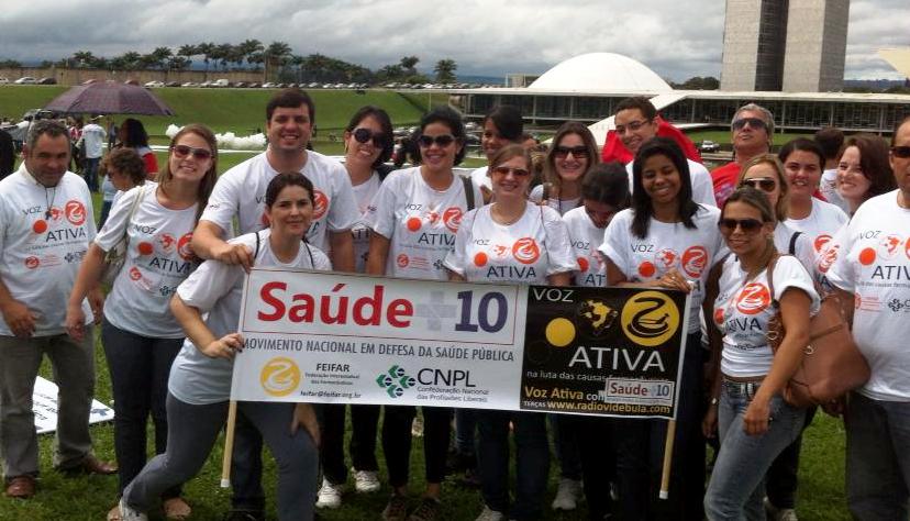 Farmacêuticos e outros profissionais da saúde de todo País participaram na quarta, 10 de abril, na Esplanada dos Ministérios, em Brasília, de uma passeata que seguiu da Catedral Metropolitana até o Congresso Nacional. Na oportunidade, a Presidente do Conselho Nacional de Saúde (CNS), Maria do Socorro de Souza, anunciou que já foram coletadas 1 milhão 250 mil assinaturas para o Projeto de Emenda Popular que assegura 10% do PIB para o orçamento da União na saúde. Até o mês de junho o movimento que reúne mais de 70 entidades espera coletar mais 600 mil assinaturas para viabilizar a apresentação do projeto na Câmara dos Deputados.