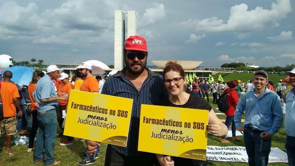 Lorena Baía, na foto com o diretor do Sinfargo Fabio Basílio: dirigentes goianos na Marcha em defesa do SUS