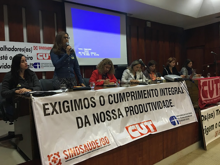 O Sindicato dos Farmacêuticos do Estado de Goiás participou nesta segunda-feira,13, no auditório Costa Lima da Assembleia Legislativa de Goiás de audiência pública para discutir o processo administrativo nº 201600013001591 de autoria do governador, Marconi Perillo. O processo prevê o corte de 50% do adicional de produtividade que poderá gerar prejuízos a 7.115 mil trabalhadores estaduais da Saúde, incluindo farmacêuticos. A produtividade é uma compensação pelo desempenho de cada servidor em seus postos de trabalho e representa mais de 60% do salário do servidor.