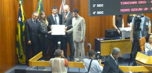 Por indicação do Sindicato dos Farmacêuticos de Goiás (Sinfar-GO), o farmacêutico Raphael Cavalcante Calixto foi homenageado na Câmara Municipal de Goiânia por “relevantes serviços prestados” à área de saúde. A iniciativa da homenagem foi do vereador Fábio Tokarski (PCdoB) e se deu em comemoração ao Dia do Trabalhador. Na ocasião foram agraciados representantes de sindicatos,federações, centrais sindicais, conselhos, associações e outras entidades que defendem os direitos dos trabalhadores em diversas categorias.