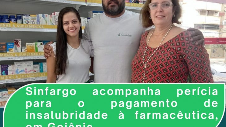 O presidente do Sindicato dos Farmacêuticos de Goiás (Sinfargo), Fábio Basílio e assessora jurídica, Valéria Pelá, acompanharam, na manhã dessa sexta-feira (10/03), uma perícia realizada em uma farmácia de Goiânia. A perícia é referente a uma ação judicial que o Sindicato ajuizou para o pagamento de insalubridade à farmacêutica Letícia.